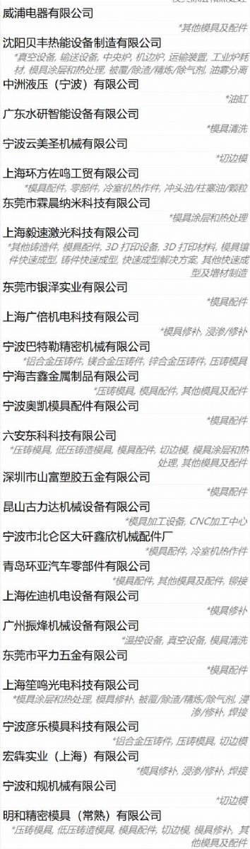 模具配件及服務(wù)