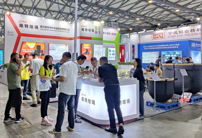 在本屆展會上,嘉興皓特隆重展示了黏土石墨碳化硅坩堝、樹脂石墨碳化硅坩堝、熔銅坩堝等一系列核心產品,以及豐富的耗材產品,為現(xiàn)場的專業(yè)觀眾全面呈現(xiàn)了其在壓鑄、重力鑄造、低壓鑄造等生產工藝熔煉,以及有色金屬冶煉、貴金屬熔煉等方面的全方位解決方案。