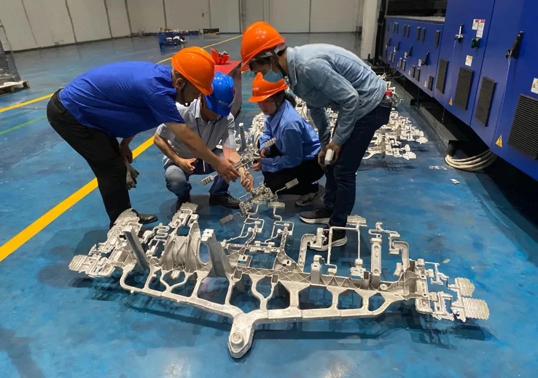6500T超大型壓鑄島交付儀式。圖源:宇部集團 此外,據了解,今年 3 月 17 日,宇部興產機械順利向日本利優比Ryobi 公司位于靜岡縣菊川市的工廠交付了首臺超大型壓鑄機。這臺超大型壓鑄的機型為 UB6500iV2,合模力 6500T。 廣西汽車鎂合金半固態壓鑄CCB試制成功 近日,廣西汽車集團旗下五菱工業在輕量化技術領域取得重大進展——儀表板橫梁支架(CCB)鎂合金半固態壓鑄首次試制成功。此次試制產品采用鎂合金注射成型機與半固態成型工藝,長度超過1.5米,單次鎂合金注射量超過8kg,成品重量僅4.6kg。