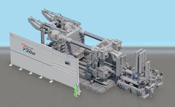 UH7300 壓鑄機外觀(概念圖)。圖源:宇部集團 此次新推出的產品型號涵蓋兩款壓鑄機,分別是鎖模力達 7,300 噸的 UH7300 壓鑄機,以及鎖模力為4,500 噸的 UH4500 壓鑄機。值得一提的是,加上 2024 年 8 月已上市的 UH9000 壓鑄機,宇部興產機械現已構建起鎖模力從 4,500 噸至 9,000 噸的完整產品系列,能夠滿足不同客戶多樣化的生產需求。