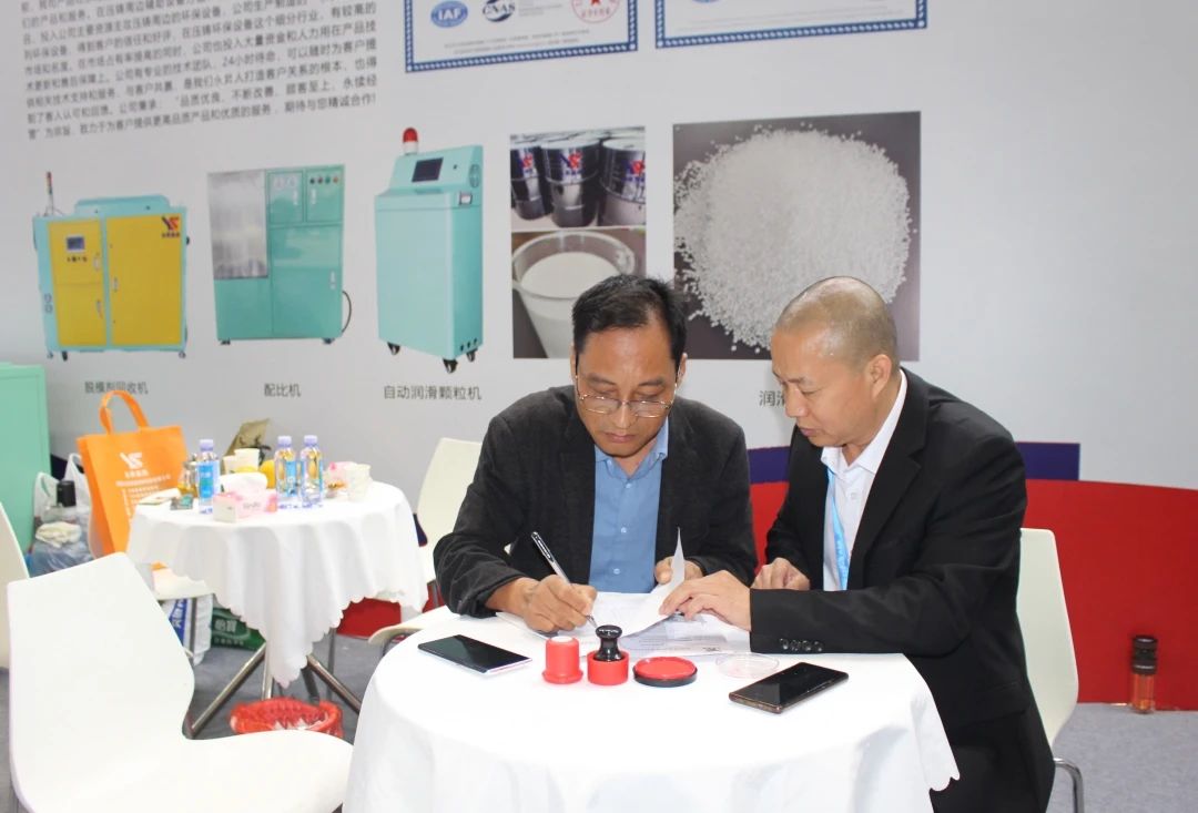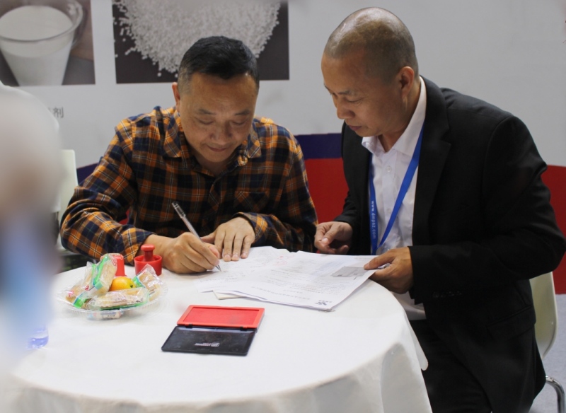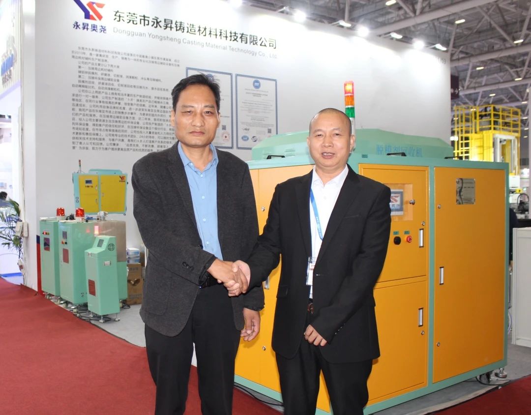 展會(huì)現(xiàn)場(chǎng)咨詢客戶 四天的展會(huì),永昇鑄造材料公司收獲頗豐,吸引了許多新老客戶的洽談交流與合作,不僅展示了公司形象和實(shí)力,還推介了公司系列產(chǎn)品。同時(shí),還收獲了多筆訂單。展后第三天,永昇鑄造材料公司分別與東莞市鎂利宸五金科技有限公司、重慶凱美科技發(fā)展有限公司、東莞勝輝機(jī)械有限公司等三家企業(yè)簽訂購(gòu)銷協(xié)議,現(xiàn)場(chǎng)售出2臺(tái)脫模劑回收機(jī)、1臺(tái)脫模劑配比機(jī)。