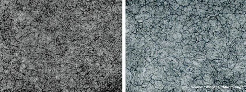 圖5. 合格(左)與不合格(右)的H11鋼顯微組織 (500x) 主要挑戰(zhàn)包括: 均勻加熱和冷卻: 在加熱至奧氏體化溫度及后續(xù)淬火過程中,必須確保大型模具整體溫度均勻分布,以避免因不均勻相變所導(dǎo)致的內(nèi)應(yīng)力積累,從而防止變形或開裂的發(fā)生。 實現(xiàn)足夠的淬火速率: 受H13鋼熱導(dǎo)率限制,從大型模具的截面快速傳導(dǎo)熱量,以達(dá)到NADCA #207規(guī)定的表面熱電偶(Ts)最低淬火速率(至少50°F/分鐘或28°C/分鐘),并非易事。 減小變形和開裂: 在快速淬火過程中,模具表面與芯部之間形成的溫差會引發(fā)不均勻的熱應(yīng)力和組織應(yīng)力,從而顯著增加大型壓鑄模具變形甚至開裂的風(fēng)險。 現(xiàn)有規(guī)范的應(yīng)用: 當(dāng)前行業(yè)規(guī)范(如NADCA #207)主要針對估計重達(dá) 1 噸的模具設(shè)計的。然而,面對重量達(dá)數(shù)噸的大型一體化壓鑄模具,這些規(guī)范的實際適用性與技術(shù)充分性正受到質(zhì)疑。其中,如何真實反映模具整體性能所需的熱處理試樣數(shù)量及位置,已成為亟待解決的關(guān)鍵問題。 設(shè)備能力: 大型一體化模具的熱處理需要具有足夠承重和冷卻能力的真空爐。 大型一體化模具的現(xiàn)代熱處理技術(shù) 為了應(yīng)對大型一體化模具熱處理相關(guān)的挑戰(zhàn),先進的真空熱處理技術(shù)和工藝已得到開發(fā)和應(yīng)用。 高壓氣體淬火(HPGQ):在單室或多室真空爐中廣泛應(yīng)用的高壓氣體淬火技術(shù)(HPGQ),通常采用氮氣作為淬火介質(zhì),其壓力通常超過10或15bar,這對大型H13模具實現(xiàn)必要的快速冷卻速率至關(guān)重要。配備徑向氣體噴嘴系統(tǒng)及大功率風(fēng)扇(功率可高達(dá)800千瓦)的先進設(shè)備,能夠確保淬火氣體在大型負(fù)載空間內(nèi)實現(xiàn)高效流動(引自溫根斯,《最大化》)。 定向冷卻:部分先進真空爐配備了定向可控冷卻系統(tǒng),可通過精確調(diào)控氣流分布模式,提升復(fù)雜形狀模具在冷卻過程中的均勻性,從而減小變形。 中斷淬火(等溫保持):中斷淬火技術(shù)通過在中途特定溫度暫停冷卻(有時稱為 “溫浴” 效應(yīng)),有效緩解因內(nèi)外溫差導(dǎo)致的變形與開裂風(fēng)險。該工藝使模具內(nèi)部熱量得以向外擴散,促進表面與心部溫度均衡,降低殘余應(yīng)力,之后繼續(xù)淬火過程。 大型真空爐:真空爐制造商已經(jīng)開發(fā)了專用于大型模具熱處理的真空爐,可承載重量達(dá)5,000公斤至8噸的大尺寸、高重量工件。