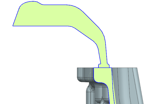 2.上述填充順序的澆口設計:要嚴格控制上述的填充順序和梯度,重點是要對每個內澆口尤其是前兩個內澆口的入料導向,鋁液流動是往背壓小的區域優先填充的,內澆口厚度小,所以通常大部分鋁液會優先充滿主澆道然后再往內澆口逐個填充,所以導向設計首先要克服背壓這個問題; 原理其實也很簡單,就是利用圓周運動的離心力,當高速圓周運動的物體脫離束縛后是沿著脫離點的圓周切線方向運動的;所以此類澆排的核心就是利用這一原理對前幾個澆口進行導向設計,如圖所示: