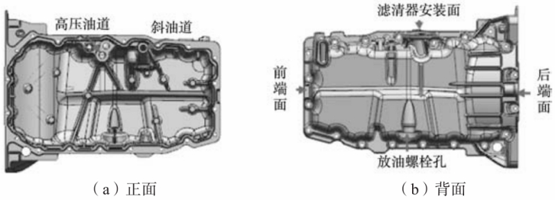 ![]() 原標題:油底殼壓鑄工藝設計及其改善 摘要 根據汽車發動機油底殼結構進行壓鑄工藝設計,利用CAE模擬軟件進行數值模擬,通過優化高壓點冷及流道方案,結合模具溫度場的分析與控制,實現油底殼熱節位置縮孔、泄漏問題的改善,提升了產品質量,滿足了批量生產條件。 油底殼作為汽車發動機的重要零部件,安裝在發動機底部。其主要功能是存儲機油并封閉曲軸箱,同時保護發動機下部的油路組件。油底殼具備較強的耐磨和抗沖擊能力,能夠起到緩沖和分散碰撞力的作用,還可以防止發動機油液泄漏,保持發動機內部的正常工作溫度。油底殼的密封、儲油和吸油功能中的任何一項喪失都將造成發動機嚴重損壞。新一代的汽車發動機油底殼零件結構復雜、壁厚不均和氣密性要求高,在壓鑄過程中會出現渦流裹氣、金屬液難以均勻補縮現象,導致鑄件內部存在氣孔、縮孔等缺陷,容易造成零件廢品率高、成本浪費,需對壓鑄工藝進行深入分析和持續改進。 01 零件結構及技術要求 圖1為某汽車發動機油底殼結構示意圖,材質為鋁合金ADC12,尺寸輪廓約427 mm×310 mm×165 mm,重量約3.4kg,平均壁厚3.3 mm。鑄件整體結構較為復雜,屬于六面加工體,中間布滿交錯的加強筋,周邊功能區域有10~20 mm不等的局部壁厚處。鑄件成形模塊除動、定模芯外,還包含3組滑塊抽芯。鑄件投影面積約1 145 cm2,需采用1650T壓鑄機設備來進行生產。零件表面不允許有裂紋、欠鑄、機械損傷及任何穿透性缺陷。高壓油道密封面、濾清器安裝面氣孔要求≤0.3 mm,其余一般加工面氣孔要求≤0.5 mm。鑄件內部孔隙按ASTM E505 2級標準執行。高壓油道孔和內腔分別要求在0.4 MPa和0.2 MPa壓力下,保壓25 s,其泄漏值分別≤1.0 mL/min和≤4.0 mL/min。