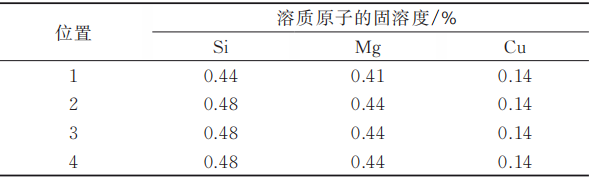 圖6 不同固溶時間下半固態(tài)壓鑄Al-Si-Fe-Mg合金的EMPA組織 表2 Si、Mg和Cu元素在基體中的固溶度