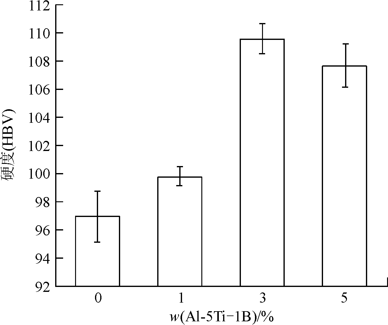 圖10 不同Al-5Ti-1B添加量時(shí)TiB2/ADC12復(fù)合材料試樣硬度