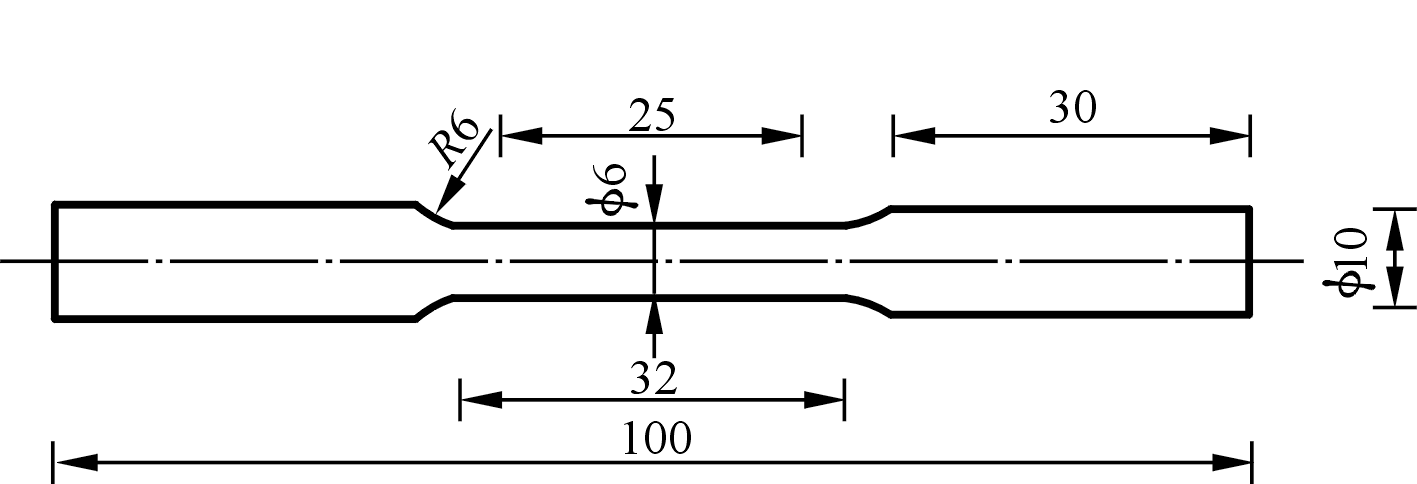 圖2 拉伸試樣尺寸示意圖 圖3和圖4分別為熔鹽法制備的Al-5Ti-1B中間合金的XRD圖譜和顯微組織。可以看出,Al-5Ti-1B中間合金包含Al、Al3Ti和TiB2等3種物相。結(jié)合有關(guān)研究可知,Al3Ti相主要以塊狀分布在基體中;納米尺度的TiB2顆粒以團(tuán)聚形式存在,主要沿著α-Al晶界分布。