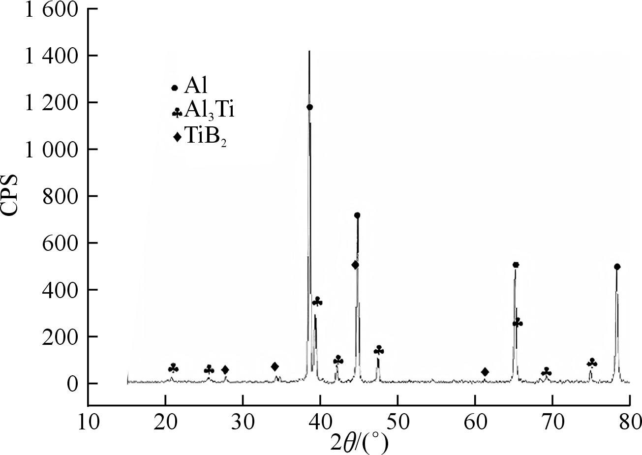 圖3 Al-5Ti-1B中間合金的XRD圖譜