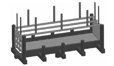 兩個側板處采用縫隙式澆道,其中側冒口直徑為Φ40 mm,內(nèi)澆道厚度為12 mm,長度為190 mm。底板處采用非特定形式的澆注系統(tǒng),鋁液充滿橫澆道后,從16個內(nèi)澆道進入鑄件底板,沿6個Φ40 mm 的圓柱澆道 充型,橫澆道、直澆道、內(nèi)澆道截面積比為1:2.8:4.6。