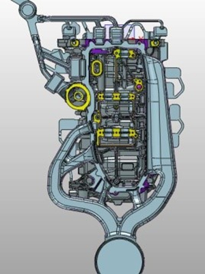 ![]() 摘要:針對汽車發動機趨向輕量化,集成化的發展趨勢,著重闡述一種新型油底殼的壓鑄要點。從壓鑄設計技術要點上拆分為3個零件,采用不同的進澆方式和新技術等設計產品;從壓鑄過程控制要點上監控生產過程中影響產品質量的每個因子,以降低產品缺陷率。通過這兩方面控制,使產品合格率達97%以上,實現批量化穩定生產。 隨著汽車工業的迅速發展,對零件的材料、設計和制造提出了更高的要求,高集成、高性能、低成本成為發展的趨勢。油底殼和下缸體都是汽車發動機的重要零鑄件,通過將下缸體平衡軸與油底殼收集過濾功能集成在同一零件上,有效地降低了發動機的自重和體積。但是,由于結構復雜,壁厚變化大,還需要拆分為不同的產品單獨加工后再組合加工,導致產品制造困難。 本課題研究的一款發動機集成油底殼,包含3個鑄件:油底殼本體、平衡軸瓦蓋和單個平衡軸瓦蓋。采用A380改性合金材料,鑄件平均壁厚為3 mm,最小壁厚為2.5 mm,毛坯質量為10.74 kg,要求內腔在300 kPa下無泄漏,油道在600 kPa和溫度超過60 ℃下無泄漏,應用于1.5T的發動機,年產量40萬件,是典型復雜油底殼鑄件。 1、壓鑄設計技術要點 1.1 澆道設計 鑄件1采用三面進澆的設計,但著重于一邊的整體進澆,見圖1。由于產品較長(上下長度達到437.2 mm),三面進澆設計可以有效地緩解流程長的問題,從而對產品進行分區域填充。但考慮到產品整體壁厚較厚,而且進澆位置存在很多凸起的鑲件,為避免鋁液流動性受阻,又加強一側的填充,并且整體逐步收窄截面積,做鋁液加速流動的設計澆道。