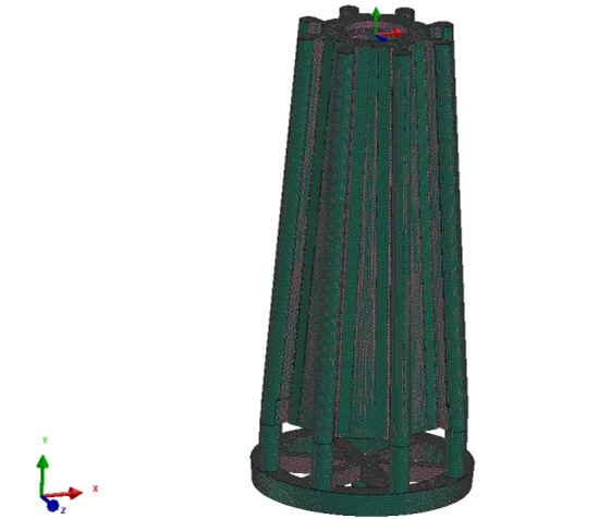 ![]() 摘要:針對低壓鑄造大型耐熱鎂合金殼體鑄件的結構及技術難點對其澆注系統設計、砂芯及激冷系統設計等進行分析。利用ProCAST軟件對殼體鑄造工藝進行數值仿真,模擬了鑄造缺陷并進行了原因分析,采取了針對性措施并進行了二次仿真驗證。根據模擬結果優化了鑄造工藝參數,結果表明,澆注系統充型平穩,補縮良好,采用低壓鑄造方法澆注了品質優良的殼體鑄件。 鎂合金具有低密度、高比強度,良好的加工性能等特點,使其在航天領域得到廣泛應用。隨著技術的發展,導彈飛行速度和最大射程均顯著提高,導致氣動加熱進一步加劇,對彈體材料輕量化和耐熱性能提出了苛刻的要求。耐熱鎂合金以其優良的力學性能,特別是優良的高溫性能,成為新型導彈彈體結構材料的首選。近年來發展的新型高強度耐熱鎂合金系列,抗拉強度可達到330 MPa以上,其綜合性能達到某些鑄造鋁銅合金的水平,在200~300 ℃下仍具有優異的力學性能,而且其密度僅為鋁合金密度的70%,不到鈦合金的50%,材料輕量化和耐熱性能優勢明顯。但是,目前耐熱鎂合金的應用還存在一定問題,如耐熱鎂合金化學活性比較高,鑄造生產過程工藝難度較大等。本課題研究了某鎂合金殼體鑄件的工藝優化,為其更進一步的應用提供參考。 1、殼體結構及難點分析 殼體鑄件外表面形狀為錐體結構,見圖1,前端框直徑為500 mm,后端框直徑為760 mm,高度約為2 000 mm。殼體需按HB7780-2005Ⅰ類鑄件要求100%進行X光檢測及熒光檢測。 殼體內腔結構復雜,內壁上有多處環形加強筋且凸臺較多,殼體壁厚極不均勻,壁厚差大,且鎂合金材料化學活性比較高,在熔煉及充型過程中非常容易氧化、燃燒,凝固過程容易產生疏松、縮孔、裂紋、偏析等缺陷;殼體最薄壁厚僅3 mm,鑄造過程極易發生變形。
