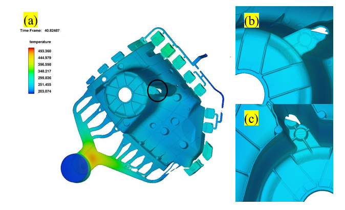 圖4 壓鑄減震塔溢流槽及排氣槽 3、模擬分析及工藝優(yōu)化