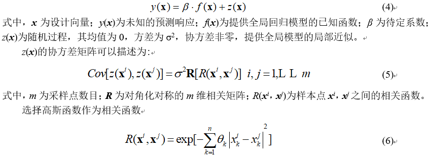 圖4:不同情況下的響應圖 3、基于溫差和間隙率的多目標 Kriging元模型的構建 3.1 Kriging元模型理論 Kriging元模型是一種具有統計性的近似技術,兼具全局近似和局部最優的優勢,被不斷應用到各個領域,現已衍生出多種Kriging方法。普通Kriging模型通常被描述為一個多項式函數和一個隨機分布函數的和:
