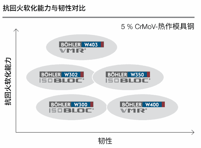 在模具溫度場無法達到較理想狀態的生產條件下,Bohler W400VMR +氮化/涂層,高韌性、高延展性材料輔以表面處理可以提高抵抗疲勞裂紋出現的能力。