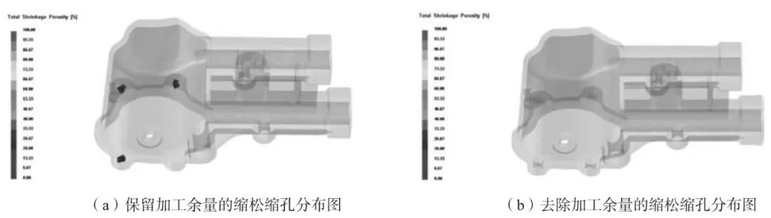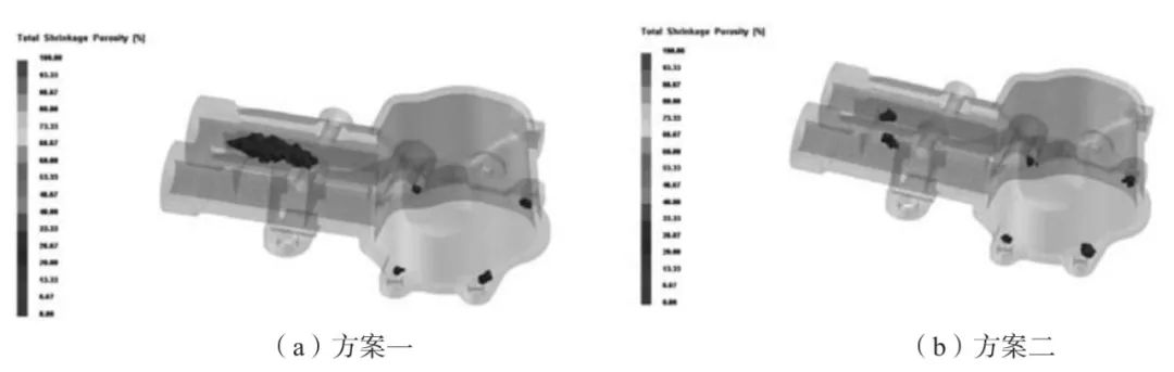 圖12 工藝優化成形后的鑄件的縮松、縮孔分布