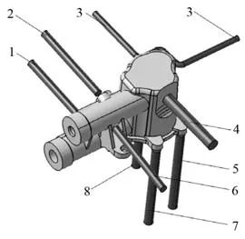 圖8 兩種方案的縮松、縮孔所在位置 4.工藝優化 4.1 優化方案 綜合比較兩種澆注系統,方案二較方案一在充型過程中較為合理且縮松、縮孔體積較小,所以選擇方案二并對其進行進一步工藝優化。 在充型過程中,針對在鋁液充型30%的時候出現的短暫臺階面,調整兩個內澆道的截面積,但保證總面積不變,這樣使得充型到該處時兩側液面更平穩,減少因金屬液紊流、飛濺而導致的氣孔、氧化夾渣等缺陷。針對圖7F處產生的較大縮孔,調整左側內澆道的位置,這樣澆道位置與出現缺陷的F處較近,便于補縮,改善此處內縮孔情況。 由于距離澆口遠處的薄壁部分厚度較為不均,較厚的部位在凝固之前周邊部位已經凝固,無法進行補縮,針對由于此原因產生的縮孔,采用添加冷卻系統的方法,調整凝固時溫度場的分布,得到較好的凝固順序。冷卻系統采用水冷的方式,水溫選擇15 ℃。 對于孔部位的缺陷,由于此處厚度差異較大,因此在此處添加冷卻水管效果不太顯著,因此可以將孔處添加加工余量,將孔填上,后續再進行孔加工,添加的加工余量可以起到補縮的作用,再通過冷卻水管將縮松、縮孔的位置調整在加工余量范圍內,后續孔加工時進行去除。 綜上所述并結合數值模擬,優化后的澆注系統優化結果和具體的冷卻分布位置如圖9和圖10所示,冷卻水管的參數如表2所示。