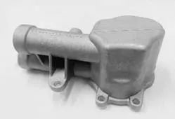 圖11 充型過程和凝固過程的溫度場 可以看出,在充型時,兩股金屬液匯入一起,未出現臺階面的情況,并且在液面升到上側的薄壁部分時,金屬液平穩上升,未出現紊流、飛濺的現象。在凝固時,除了較遠處先進行凝固之外,由于冷卻系統的加入,出現縮孔的部位在周圍較薄的部位開始凝固之前已經開始發生凝固,在周圍薄壁部分失去補縮能力后。同時,由于加工余量的設置,加工孔位置厚度增加,導致該處凝固緩慢,對周圍進行補縮。同時,由于左側澆注位置的改變,在凝固到底部兩個圓筒時,澆注口距離圖7F處預測會產生縮孔位置較近,可以有效的進行補縮。 工藝優化成形后鑄件的縮松、縮孔分布如圖12所示,可以看出,由于工藝方案的改進,底部的縮松、縮孔全部轉移到了孔加工的部位,其他部位的縮松、縮孔也由于冷卻系統的增加得到了消除。 為進一步驗證優化后的變速器操縱盒工藝方案的可行性,根據上述優化方案對產品進行試制,試制產品如圖13所示,經檢驗,產品整體質量較好,內外表面無裂紋、縮松、縮孔等缺陷,并且將零件剖開,觀察易產生縮松、縮孔的圖7中的F和G處,也無缺陷產生,與上述模擬結果相吻合,說明澆注系統和冷卻系統的優化設計較為合理。