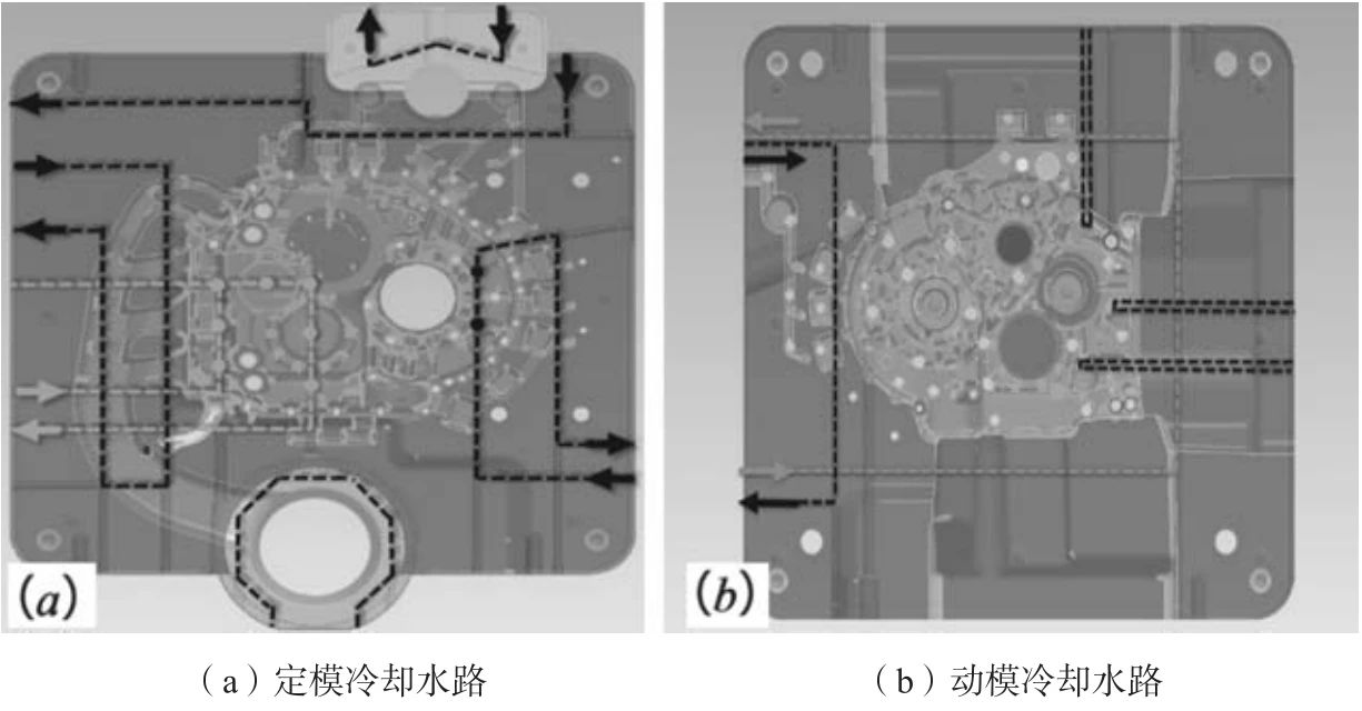圖4 動(dòng)定模冷卻水路圖