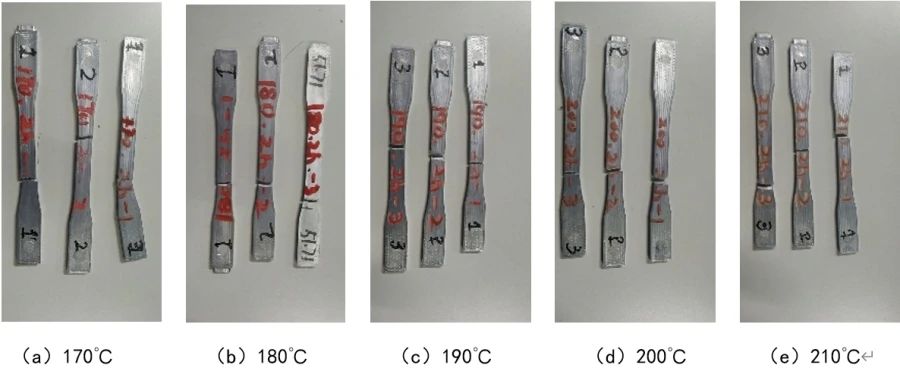 圖10 不同時(shí)效溫度下拉伸試片