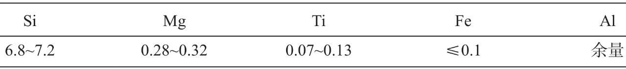 鑄件材質為A356鋁合金,其化學成分如表1所示。原料為工業純鋁、Al-20Si中間合金和Al-10Mg中間合金,利用電阻爐將工業純鋁和Al-20Si中間合金加熱至720 ℃熔化,加入Al-10Mg中間合金攪拌,然后分別加入變質劑和精煉劑進行變質處理和除氣,完成A356合金的熔煉以備澆注。金屬鑄型采用球墨鑄鐵QT500-7材料,鑄型表面噴涂料,烘干后分別預熱至280 ℃、315 ℃、350 ℃。
