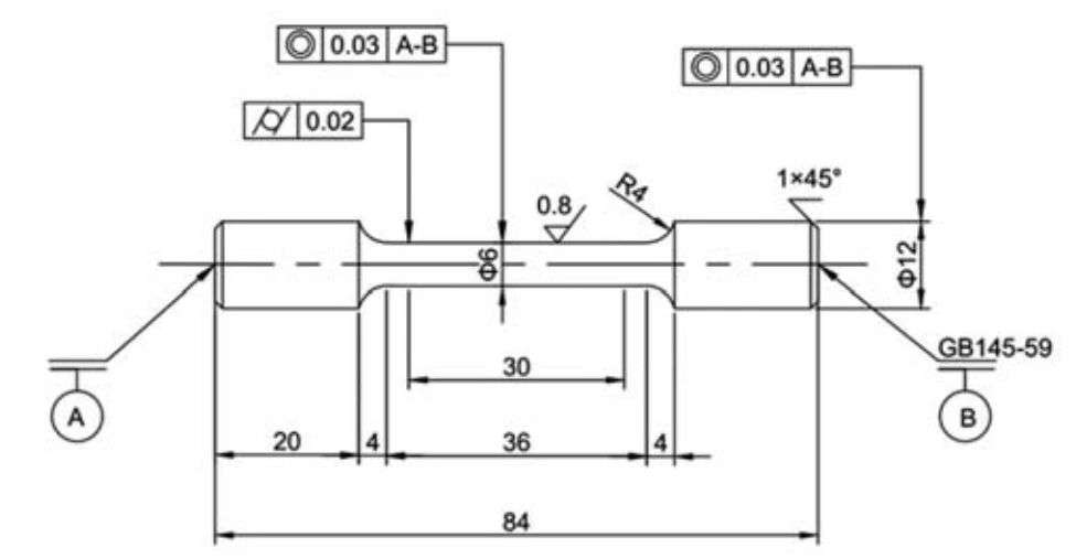 鑄件進行銑削加工去除表面余量。對試驗鑄件表面進行取樣,經研磨拋光后制成金相試樣,利用金相顯微鏡對氣孔缺陷和組織結構進行分析觀察;進行常規力學性能測試,拉伸試樣尺寸如圖5所示,斷口觀察使用掃描電子顯微鏡。