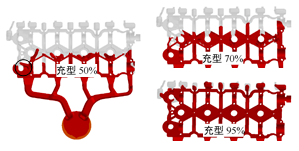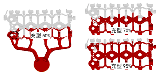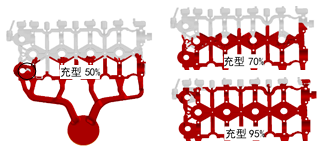 (c)方案3充型過程 圖3 鑄件在3種澆注方案下的充型過程
