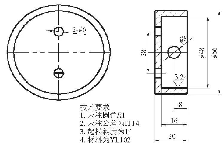 ![]() 原標(biāo)題:臥式冷室壓鑄機(jī)用殼體壓鑄模設(shè)計(jì) 壓鑄因效率高、材料利用率高、成形精度高等優(yōu)點(diǎn),在汽車、3C產(chǎn)品、五金零件等方面廣泛應(yīng)用。針對(duì)具體壓鑄件需要設(shè)計(jì)相應(yīng)的壓鑄模,殼體需要采用側(cè)澆口壓鑄模成形,而側(cè)澆口壓鑄模的設(shè)計(jì)和制造是確保鋁合金壓鑄件品質(zhì)的關(guān)鍵。以殼體鋁合金件為例,介紹鋁合金臥式冷室壓鑄機(jī)用壓鑄模的設(shè)計(jì)。 對(duì)某殼體鋁合金壓鑄件進(jìn)行了工藝分析,詳細(xì)介紹了臥式冷室壓鑄機(jī)用壓鑄模的結(jié)構(gòu)設(shè)計(jì),主要包括分型面選擇、澆注系統(tǒng)設(shè)計(jì)、側(cè)抽芯設(shè)計(jì)和脫模機(jī)構(gòu)設(shè)計(jì),闡述了該壓鑄模的工作原理和結(jié)構(gòu)特點(diǎn),為臥式冷室壓鑄機(jī)用壓鑄模結(jié)構(gòu)設(shè)計(jì)提供參考。 圖文結(jié)果 殼體結(jié)構(gòu)見圖1和圖2,該鑄件要求強(qiáng)度高,質(zhì)量輕,且在100℃以上高溫高濕環(huán)境下工作,因此選用YL102鋁合金,其熔點(diǎn)為650℃,由于Si含量較高,熔煉爐選用金屬坩堝。該鑄件上有2個(gè)φ6mm通孔及φ8mm盲孔,外形為φ56mm圓柱面,2個(gè)φ6mm通孔有中心距280-0.2mm要求,鑄件尺寸精度要求不高。該鑄件成形性能較好,要求表面光滑,內(nèi)部不得有裂紋、冷隔、氣孔等鑄造缺陷,內(nèi)、外表面的起模斜度取1°,鑄件壁厚為4mm,內(nèi)外圓柱面過渡處設(shè)置圓角,半徑取1mm;壓鑄工藝參數(shù):壓射比壓為65MPa,充型速度為42m/s,澆注溫度為630℃,模具預(yù)熱溫度為160℃,充填時(shí)間為0.1s,采用氟化鈉水作涂料。根據(jù)投影面積法計(jì)算合模力,選用J1110A型臥式冷室壓鑄機(jī)壓鑄,該壓鑄機(jī)壓室內(nèi)徑為φ40mm,外徑為φ90mm,壓射行程為0~120mm。
