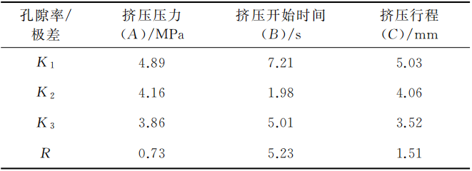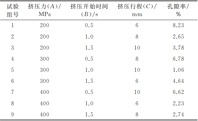 (2)局部擠壓的關(guān)鍵工藝參數(shù)是擠壓壓力、擠壓開始時間和擠壓行程,采用正交試驗獲得優(yōu)化的擠壓工藝參數(shù)。