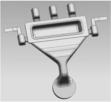 圖2 扣手鑄件壓鑄工藝方案 2 勻加速半固態流變壓鑄工藝及模擬 應用智鑄超云—壓鑄領域專業CAE云平臺進行數值模擬。先用三維造型軟件UG進行三維圖的造型并生成STL文件,然后上傳至智鑄超云的云計算平臺進行前置處理實現網格的自動剖分,對鑄件壓鑄充型過程進行了模擬。分別設置了如圖3所示的四種壓射曲線對扣手鑄件的壓鑄過程進行了模擬,對壓射過程中合金液在壓室中的流動情況進行分析。