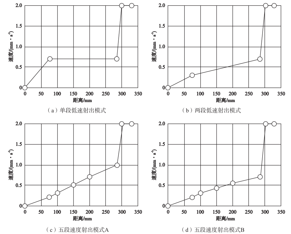 圖6 五段速度射出模式A壓射過程的模擬結果