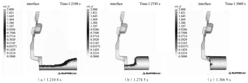 圖5 兩段低速射出模式壓射過程的模擬結果