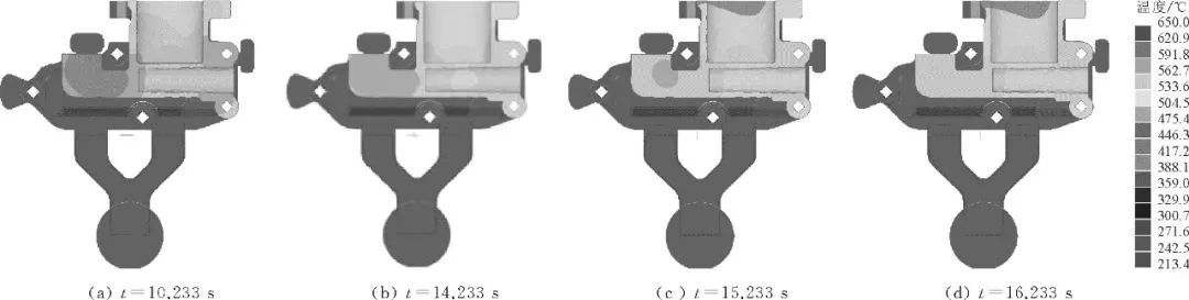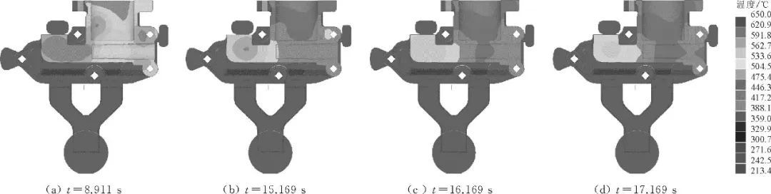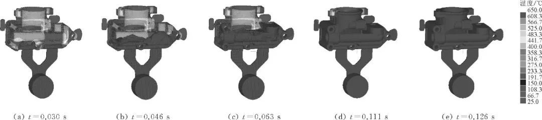 圖3 初始方案鑄件的溫度場模擬