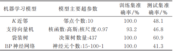 表2 不同機器學習模型的超參數設置與模型預測準確率