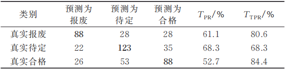 (1)以鋁合金大型薄壁壓鑄件生產線中獲取的工業大數據為研究對象,通過袋裝樹方法建立了壓鑄關鍵工藝參數與鑄件下線質量之間的多參數映射模型,可以初步實現對前機艙等壓鑄件進行下線質量初篩,減少人工成本。模型的訓練集預測準確率為100%,測試集準確率為60.9%,測試集容忍準確率為77.3%,報廢、待定和合格3類鑄件預測的容忍真正率(TTPR)分別為80.6%、68.3%、84.4%。