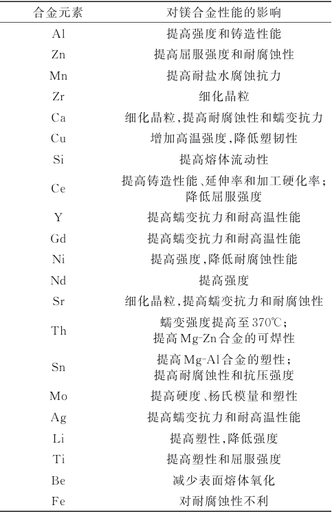 式中 m為液相線的斜率,C0 為合金中的溶質濃度, ki 為為溶質元素的分配系數。二元鎂合金中晶粒的尺寸和形態與合金中存在的溶質種類與含量直接相關:Q值越大,表明溶質在枝晶/液態前沿形成過冷區的傾向越大,產生的晶粒細化效果越顯著。在二元體系鑄造鎂合金中,常見溶質元素的Q值如表5所示。需要注意的是,表中列出的Q值僅針對 二元體系,而在實際合金中往往是三元乃至多元體系,不適用于該方程,但仍有借鑒意義。