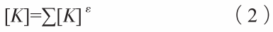 式中:[K]為整體結構剛度矩陣,可表示為: