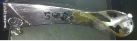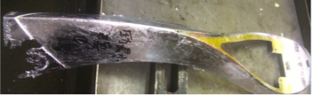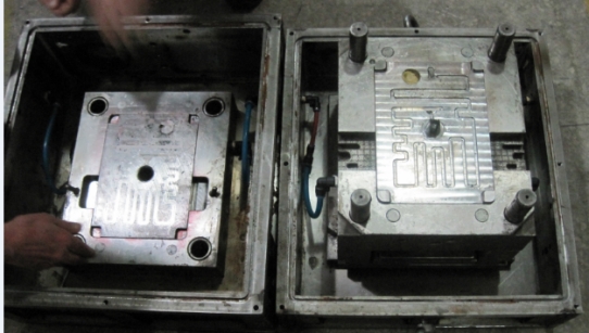 (a)定模部分 (b)動模部分 圖5為不同壓鑄條件下所獲得的S型鑄件。可以看出,在普通壓鑄工藝下,由于模具型腔內(nèi)氣體未能及時排出型腔外,導(dǎo)致合金液在充填過程中,受到來自型腔內(nèi)氣體的反向阻力,使液態(tài)合金未能填充滿S型鑄件的末端,鋸開產(chǎn)品橫斷面發(fā)現(xiàn),產(chǎn)品斷面特征中殘留少量氣孔缺陷。在設(shè)計(jì)優(yōu)化后的高真空壓鑄工藝下,由于模具外圍及模具型腔內(nèi)的氣體在壓鑄前被抽離至高真空,因此,液態(tài)合金在填充過程所受阻力小,能順利填充整個S型鑄件,鋸開產(chǎn)品橫截面未發(fā)現(xiàn)有氣孔及縮松缺陷,產(chǎn)品截面特征的致密性較好。表4為不同壓鑄環(huán)境下所獲得的S型鑄件在拉伸試驗(yàn)后,由WE-100液壓式萬能測試機(jī)測得的抗拉強(qiáng)度及WILSON-UH4250型萬能硬度計(jì)測得的硬度數(shù)據(jù)。 為進(jìn)一步分析設(shè)計(jì)優(yōu)化后的高真空壓鑄工藝對實(shí)際工程應(yīng)用的適應(yīng)性,圖6為壓鑄企業(yè)針對不同壓鑄環(huán)境實(shí)際試生產(chǎn)的長條形鋅合金壓鑄件。采用普通壓鑄工藝時,由于產(chǎn)品外形尺寸較大,壁厚較薄,合金液在填充過程中,模具型腔內(nèi)氣體未能在充填時間內(nèi)排出模外,導(dǎo)致合金液受到較大的反向填充阻力,使試制產(chǎn)品左下端出現(xiàn)填充不足的缺陷。采用高真空壓鑄工藝后,抽真空系統(tǒng)在壓鑄前先對模具型腔及密封箱抽真空,液態(tài)合金在高真空狀態(tài)下填充模具型腔時,充填過程反向阻力小,試制產(chǎn)品能順利的充填完整,見圖6b。可見,在普通熱室壓鑄機(jī)上通過設(shè)計(jì)優(yōu)化實(shí)現(xiàn)的高真空壓鑄工藝能大幅提高壓鑄件的成形品質(zhì)。