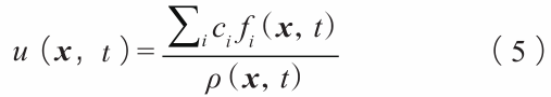 式中:ωi為第i離散速度方向上密度權重,ρ為流體的密度,u為當前位置時刻的流體速度,cs為格子聲速,τ為松弛時間。 宏觀場密度由下式給出:
