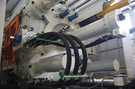 鉸耳孔增加鋼套和銅套,改善機絞磨損 另外,H系列2500T以上的重型壓鑄機都采用HPM的高剛性鎖模機構,有6根大杠(原本國內機都是采用四根大杠受力),3500T以上的模板甚至更是采用鍛鋼材質,比歐洲、日本的部分機器用料成本更高,更加穩定耐用。 “我們的研發目標是要讓H系列重型機具備世界級的競爭力,以它重新定義中國重型壓鑄機新標準。”黎前虎說道。 為全球市場高端壓鑄件生產商量身定制 隨著新能源車結構件需求越來越多,國內重型機市場也快速增長,但對重型機而言,客戶最看重的就是生產穩定性和合格率,所以大多龍頭企業客戶更青睞質量更高的進口機。這也給了伊之密一個警示,重型機要定位高端市場。 “也因此,我們才有決心和勇氣消化HPM技術標準,提升H系列的制造成本,舍得用料,例如重型大杠調模螺母,我們將原本國內機普遍使用鋼材改為按歐洲日本重型機標準使用的特殊銅合金,有效解決了鋼螺母易燒蝕至變形和調模不動的問題,但光這一項每臺機的成本便高出十幾萬人民幣!”