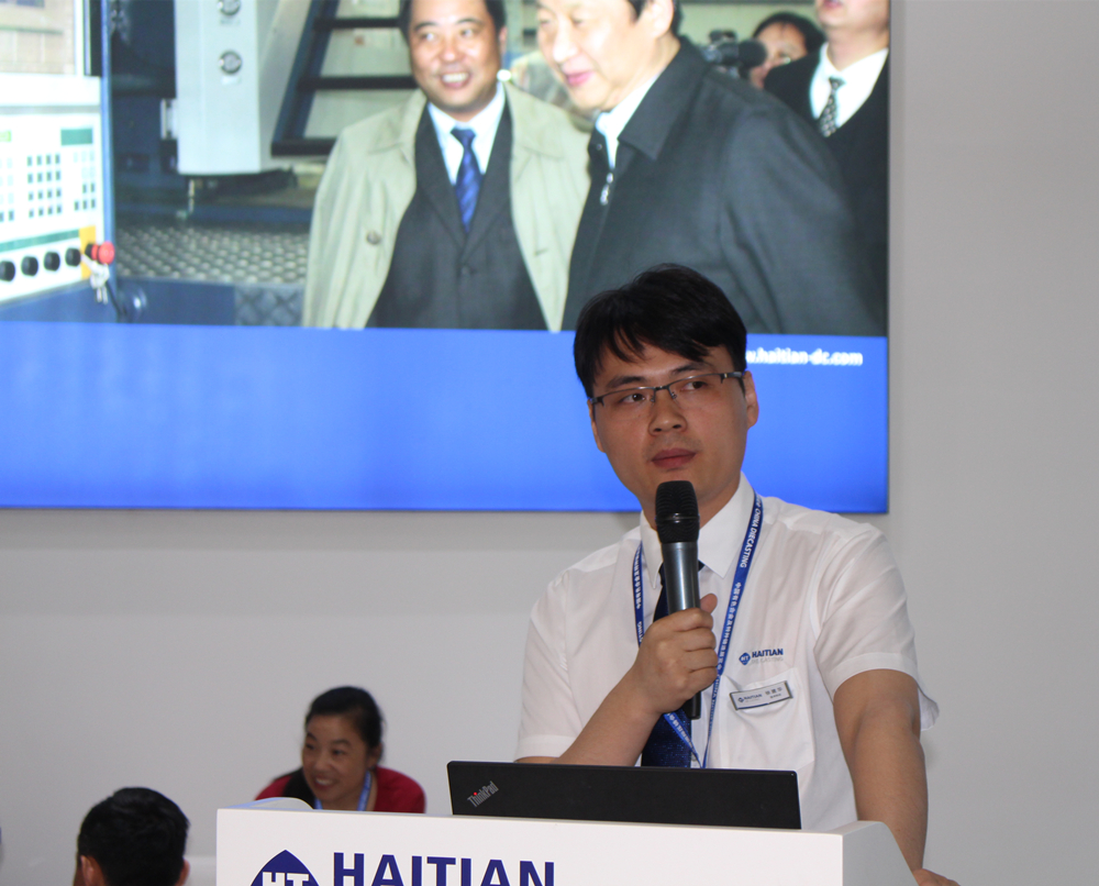 海天金屬總經理樂曉東先生 海天金屬技術科科長徐建華先生向參會嘉賓介紹新壓射系統的性能特點,他表示:“雙閉環實時控制壓射系統,采用西門子SIEMEN控制系統,對鑄造壓力、壓射速度進行閉環控制,對增壓壓力,建壓時間實現閉環控制,增壓壓力可分六段設定。可實現高質量、高穩定的完美壓射工藝,生產精密、高品質的壓鑄件提供完美的解決方案。”