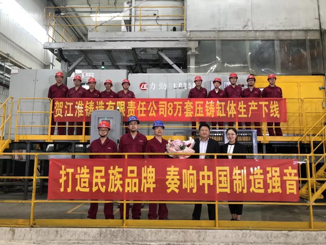![]() 近日(10月15日),江淮鑄造有限責任公司年產8萬套壓鑄缸體生產項目產品下線儀式,在安徽合肥江淮汽車配件工業園壓鑄車間隆重舉行。江淮汽車工程院鑄鋁工程項目總監王躍、江淮鑄造公司壓鑄車間生產主管潘修鋒、力勁集團重點客戶總監張英文以及項目組成員參加了下線儀式。 據了解,江淮年產8萬套壓鑄缸體生產項目,引進力勁集團大型智能自動化壓鑄島。該新型壓鑄島,由一臺合模力2500噸冷室壓鑄機,配置取件機器人、噴霧機器人,以及紅外檢測、去毛刺、水冷、切邊機、打碼機、傳送帶等周邊設備組成。儀式上,張英文代表力勁集團向江淮鑄造致以了熱烈祝賀,并送上鮮花表達了美好祝愿。 作為上游壓鑄裝備及下游壓鑄汽車零部件領域的兩家龍頭企業,力勁集團與江淮鑄造一直保持著長期友好合作關系,致力于為江淮鑄造提供優異的鋁合金發動機壓鑄解決方案。通過采用力勁先進壓鑄技術及裝備,江淮鑄造生產的發動機缸體合格率達到了98%,各系統總成設計構造均達到國際領先水平。