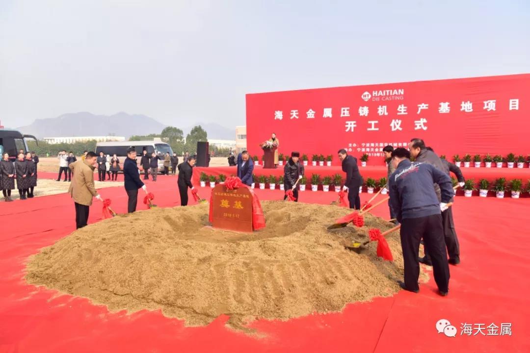 開工儀式 海天金屬壓鑄機生產基地項目總投資1.6億美元,土地面積約139畝,計劃于2020年完成建設,該項目致力于打造行業內技術最專業、功能最強大、服務最優質的壓鑄機生產基地。項目建成后,將配有獨立的試模車間供客戶與模具制造商測試模具性能。并在此設計制造鎖模力高達6000T的壓鑄機,將廣泛應用于5G通信、新能源車電池包、結構件、3C、汽車零部件、航空航天等生產領域。