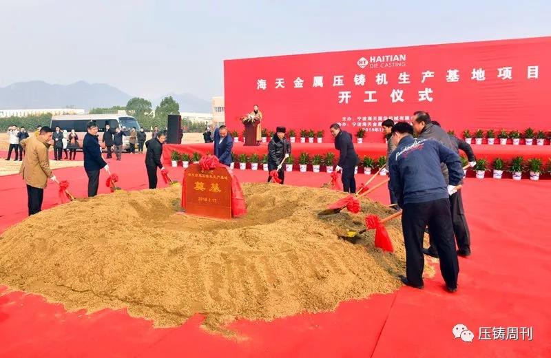 ![]() 昨日,海天壓鑄機生產(chǎn)基地項目二期開工 壓鑄周刊(2019年10月28日 浙江寧波)昨日(10月27日)上午,寧波海天金屬成型設(shè)備有限公司(下稱“海天金屬”)壓鑄機生產(chǎn)基地第二期項目開土儀式在寧波保稅區(qū)出口加工區(qū)舉行。這是繼2019年1月17日海天壓鑄機生產(chǎn)基地項目一期開工283天之后,海天金屬啟動項目二期建設(shè),創(chuàng)造了又一個“海天速度”。