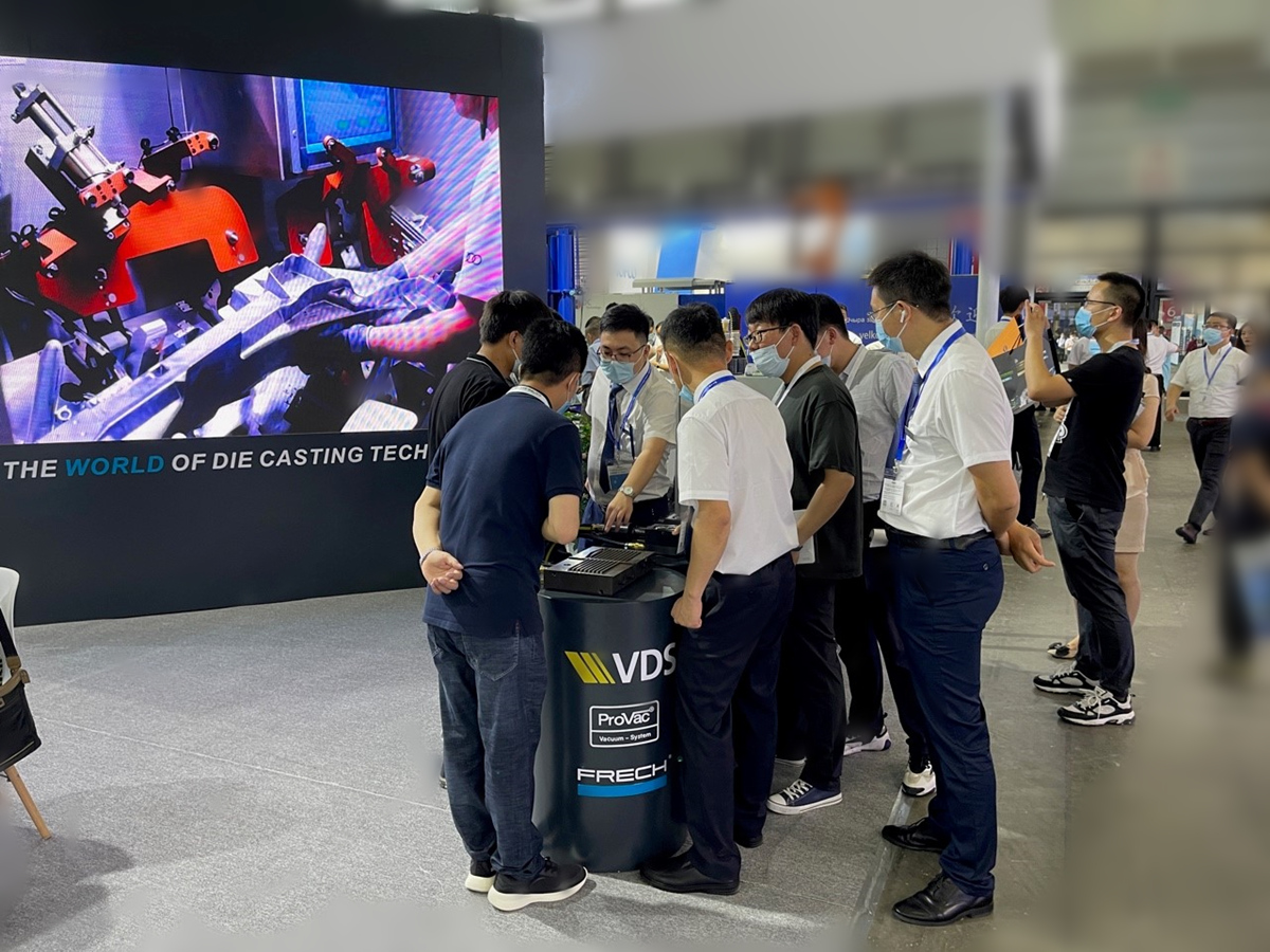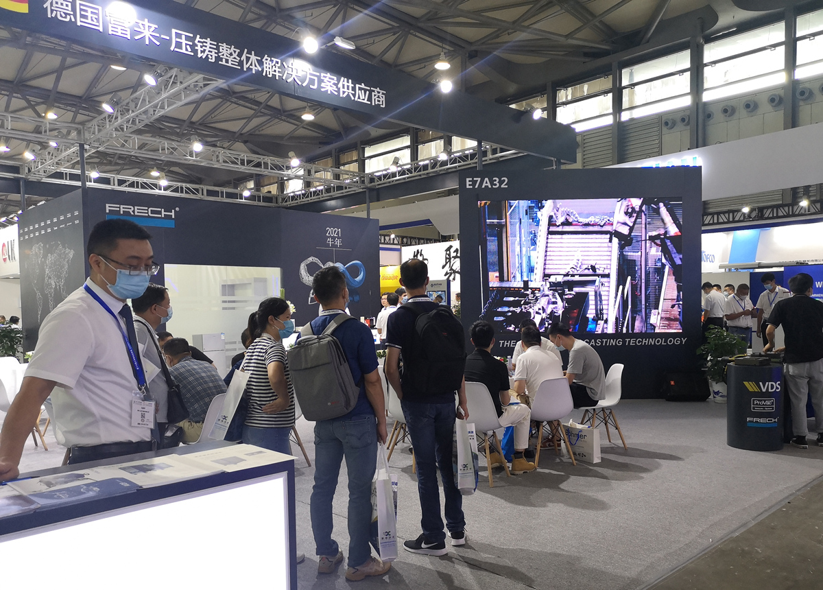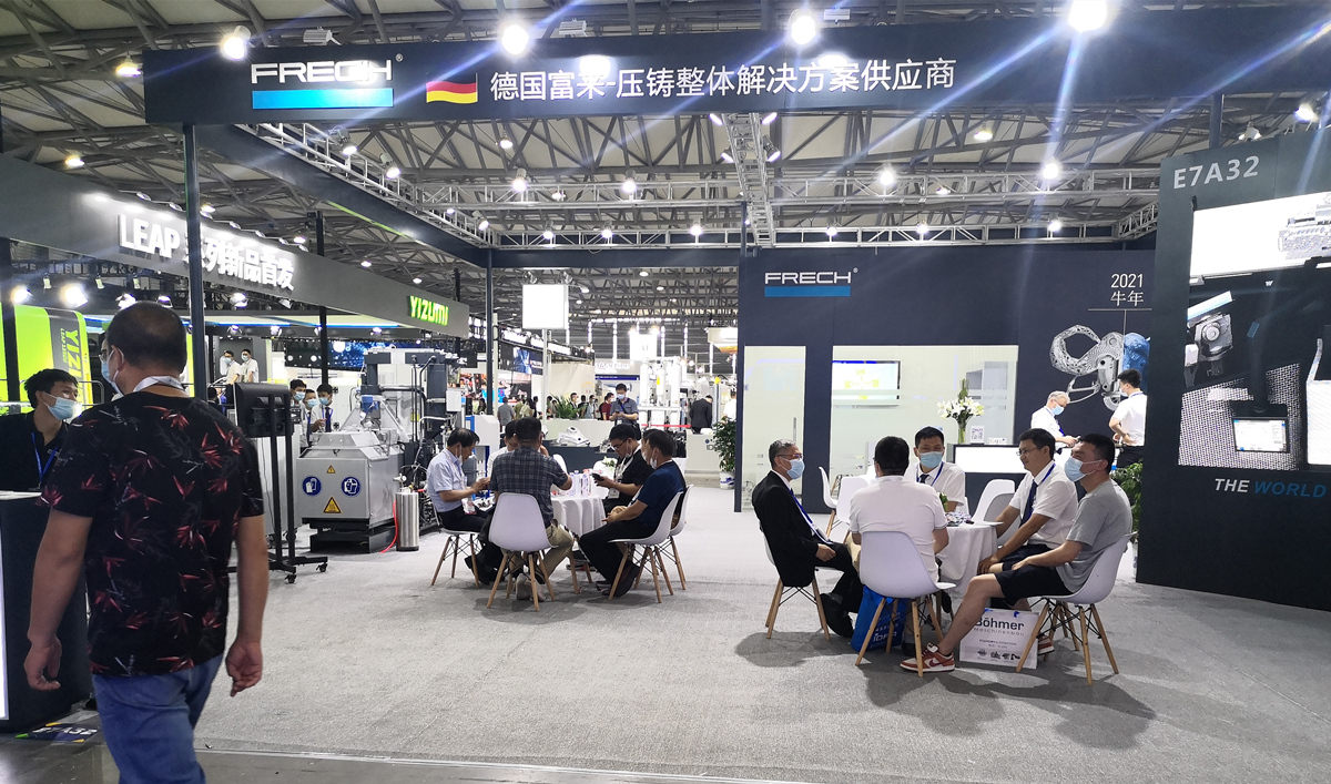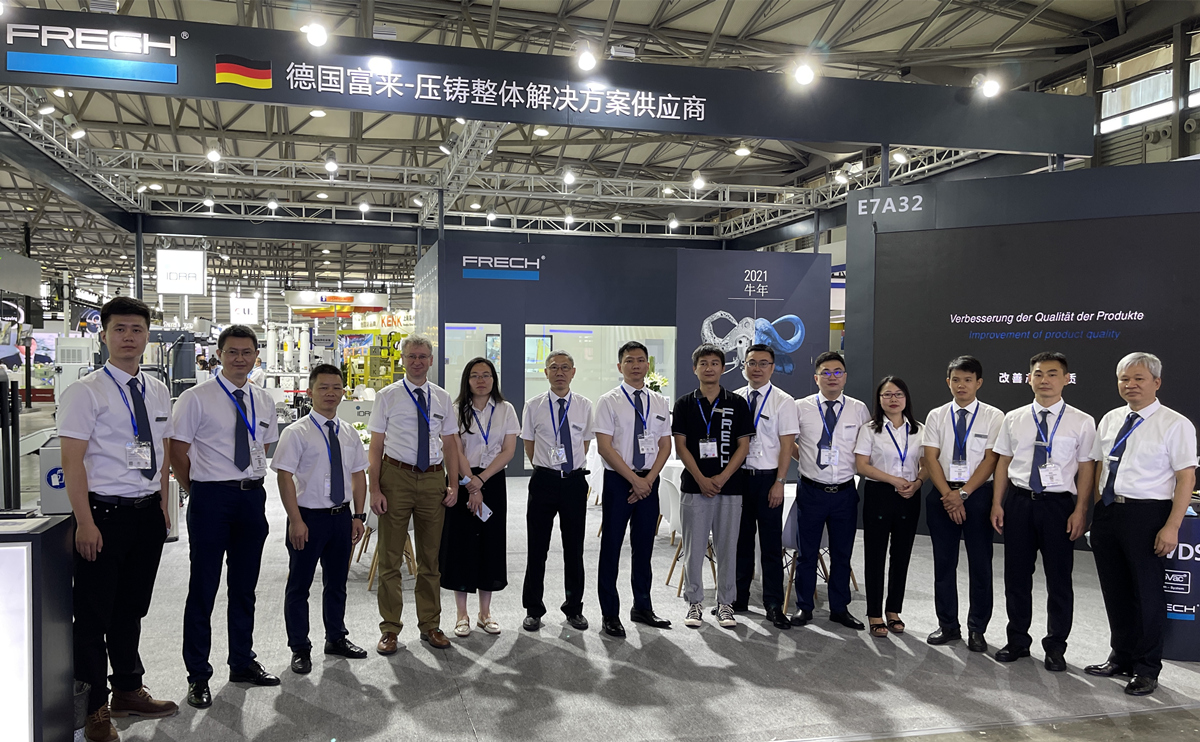 富來中國參展團隊,左四為Mr. Udo Looser 羅吾德先生 富來(上海)壓鑄機有限公司(下稱“富來中國”)是德國FRECH在中國設(shè)立的全資子公司,是一家集壓鑄機及周邊設(shè)備生產(chǎn)、銷售、服務(wù)于一體的企業(yè)。富來中國“亮相”2021上海壓鑄展,現(xiàn)場展示了配置雙槽爐的FCH-Z系列20T鋅合金壓鑄機、Robamat奧地利進口及國產(chǎn)模溫機、以及瑞士進口VDS真空機等產(chǎn)品,并現(xiàn)場推介其技術(shù)成熟的壓鑄自動化全面解決方案。