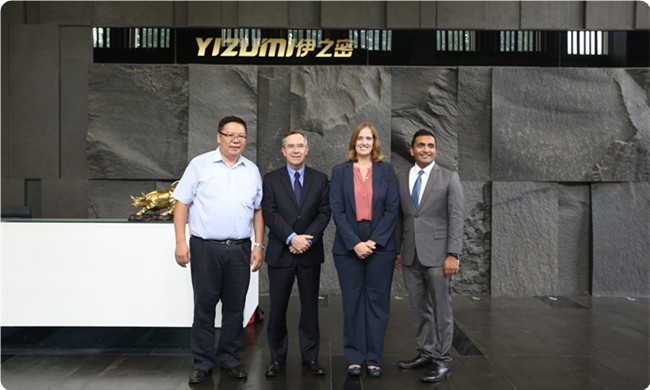 (順序,從左到右:伊之密董事總經理、美國駐廣州總領事館總領事白智理 Charles Bennett、美國駐廣州總領事館對外聯絡部主任 白佳麗Jenny Bah、美國駐廣州總領事館政治經濟部領事Aamod Omprakash) 近日,美國駐廣州總領事館總領事白智理、外聯部主任白佳麗、經濟領事歐慕德等一行,到總部位于佛山市順德的廣東伊之密精密機械股份有限公司參觀訪問。 這是總領事白智理自2015年8月就任后首次訪問順德,了解順德經濟文化教育情況。 對于伊之密之行,白智理非常重視,參觀了伊之密在高黎總部的裝備車間和園林式的辦公環境,并了解企業的近期發展情況、以及企業對市場發展變化的看法和應對策略,尤其是HPM在北美的復出進展。 董事總經理甄榮輝介紹說:“自2011年被伊之密收購后,HPM已經成功重返注塑和壓鑄的舞臺,并取得了眾多北美客戶的信任。” |