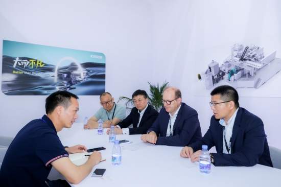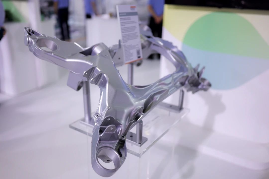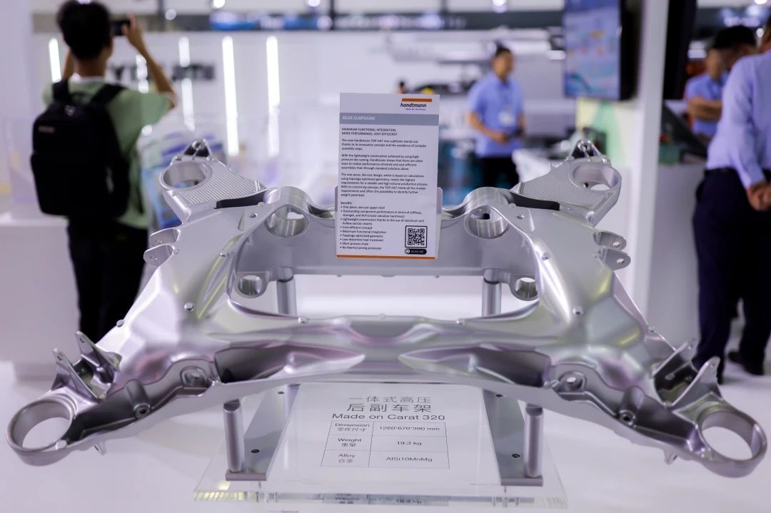 簽約結(jié)束后,兩家企業(yè)高層接受《壓鑄周刊》資訊總監(jiān)曾偉立先生專訪 在“一體化壓鑄”方面再度聯(lián)手深入合作 2022年,漢特曼與布勒簽約采購了一臺6100T超大型壓鑄機,系歐洲第一家引進超大型壓鑄機的整車廠一級供應(yīng)商。同年,漢特曼使用布勒3200T壓鑄機成功生產(chǎn)行業(yè)首創(chuàng)的一體式鋁合金副車架,后者因此榮獲“2022年歐洲最佳鋁壓鑄獎一等獎”。在本屆上海壓鑄展上,這個壓鑄件“漂洋過海”從德國來到中國,在布勒展臺現(xiàn)場展出。