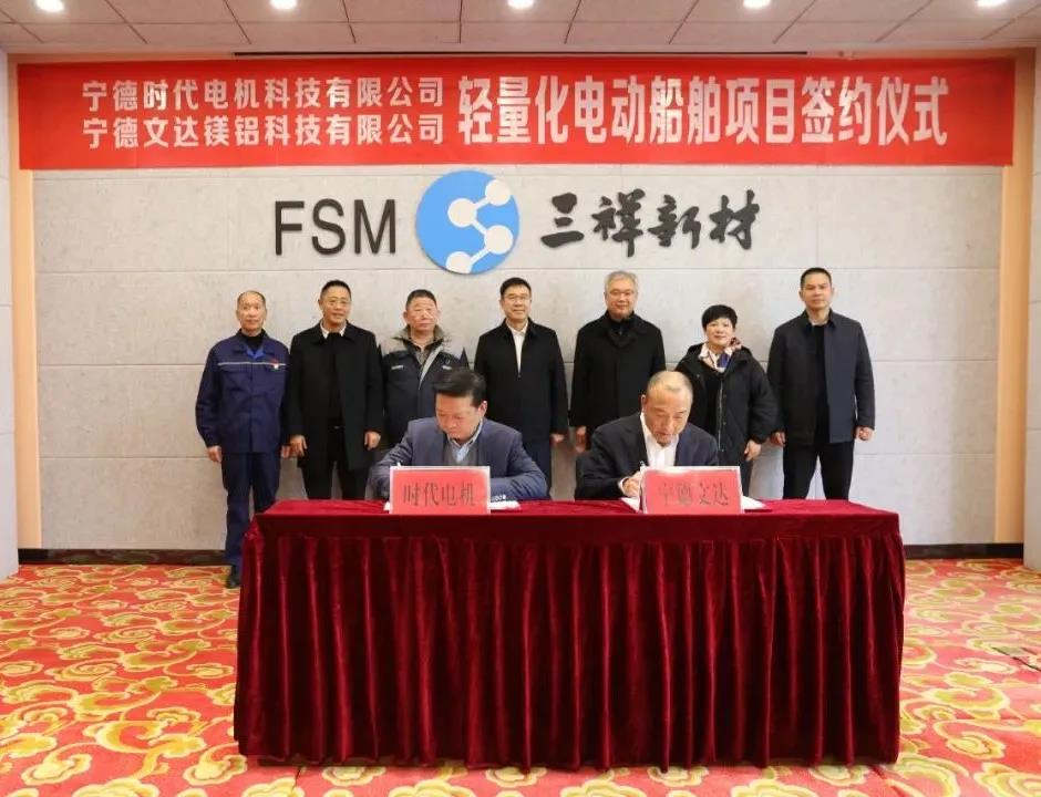 1月1日,寧德文達(dá)鎂鋁科技有限公司與寧德時(shí)代電機(jī)科技有限公司就輕量化電動(dòng)船舶項(xiàng)目舉行簽約。