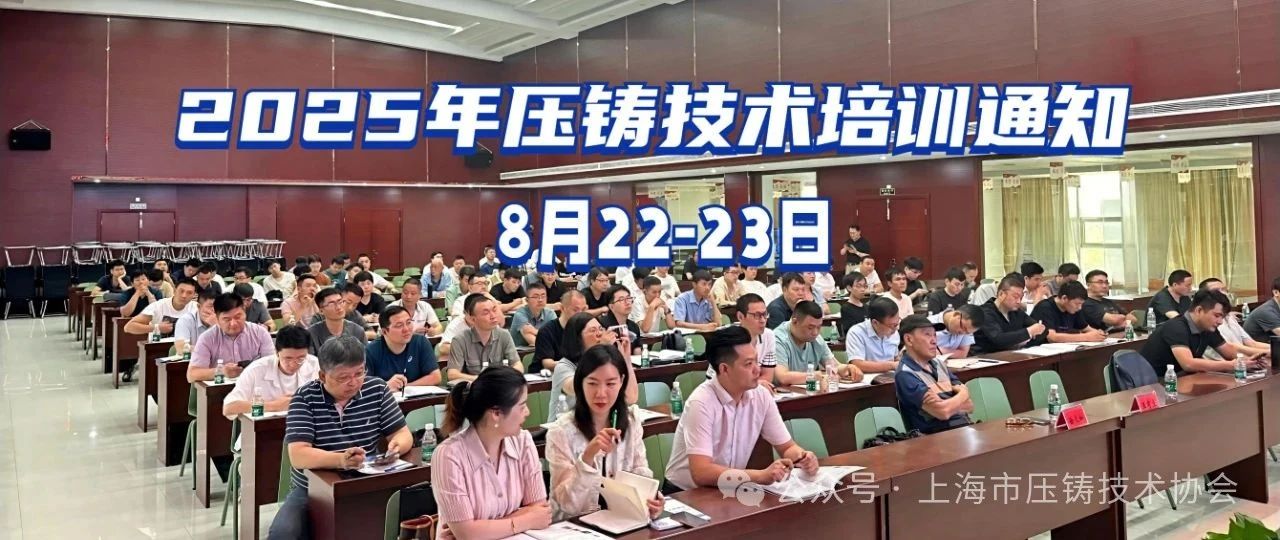 【專業(yè)培訓(xùn)】上海市壓鑄技術(shù)協(xié)會(huì)2025年壓鑄技術(shù)培訓(xùn)通知