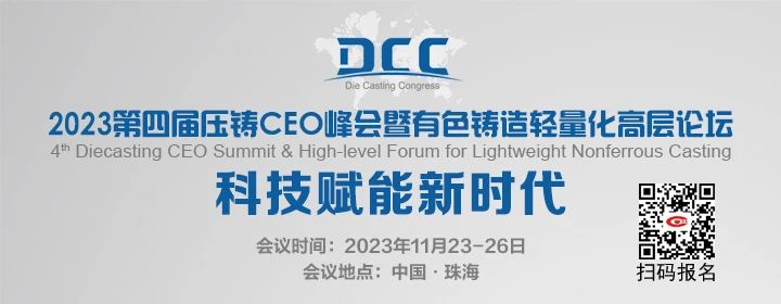 由中國鑄造協會主辦的“2023第四屆壓鑄CEO峰會暨有色鑄造輕量化高層論壇”即將于11月23-26日在廣東珠海海泉灣維景國際大酒店舉辦。