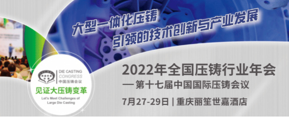 2022年全國壓鑄行業年會暨第十七屆中國國際壓鑄會議將于7月27-29日在重慶麗笙世嘉酒店舉辦。